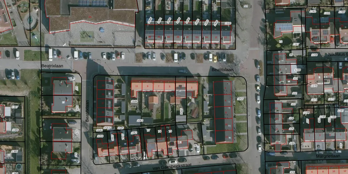 Beatrixlaan 5 is gelegen op kadastraal perceel WMS01C1644. Deze kadastrale aanduiding is uniek en wordt gebruikt door het Kadaster om eigendomsrechten en andere zakelijke rechten vast te leggen. Het perceel maakt onderdeel uit van de kadastrale gemeente Westmaas.