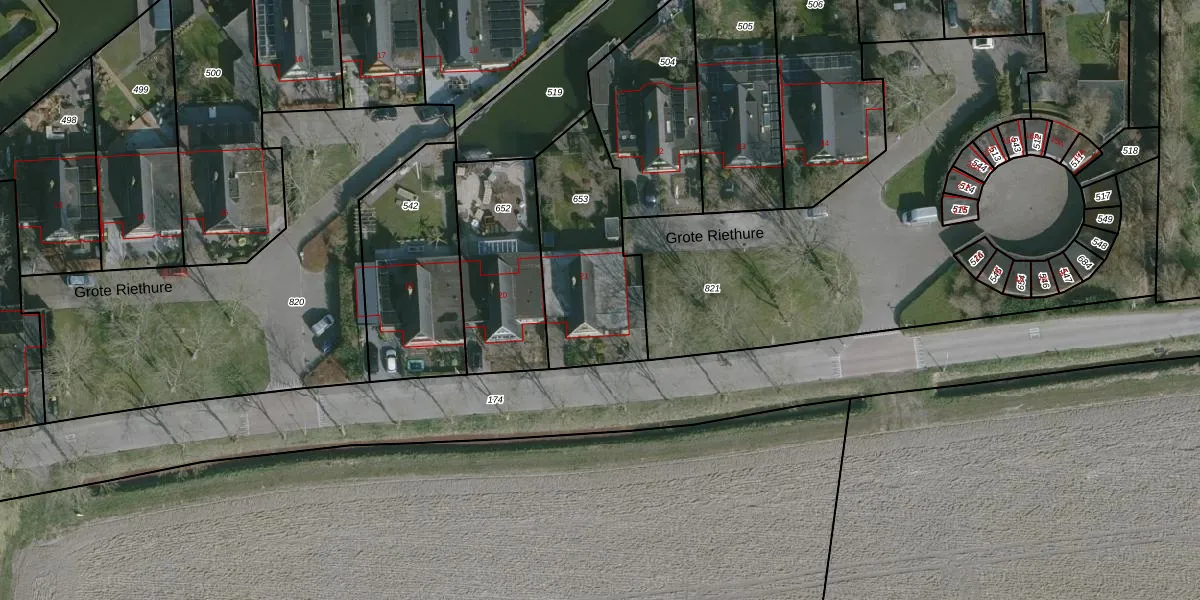 Het perceel waarop Grote Riethure 21 staat heeft een oppervlakte van 582 m². Dit is een groot perceel. De perceeloppervlakte wordt geregistreerd door het Kadaster. Gedetailleerde informatie over de maten van dit perceel kunt u vinden in het rapport Kadastrale kaart met maatvoering van Grote Riethure 21.