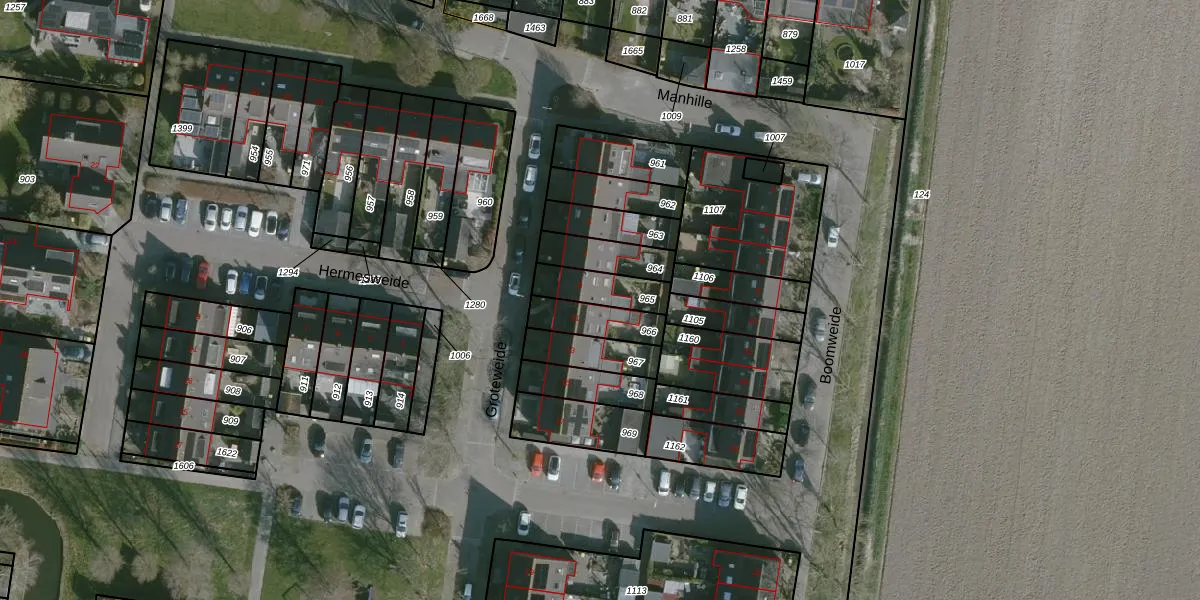 Gebruik de zoekbalk of klik op een perceel voor informatie over de adressen binnen dit perceel.