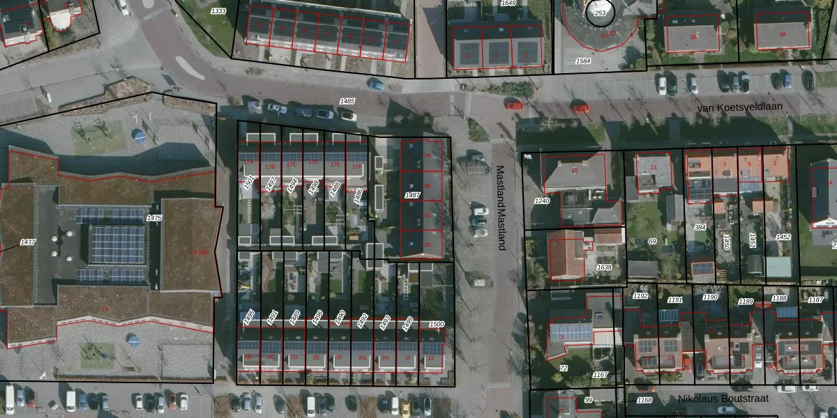 Het perceel waarop Mastland 2-C staat heeft een oppervlakte van 585 m². Dit is een groot perceel. De perceeloppervlakte wordt geregistreerd door het Kadaster. Gedetailleerde informatie over de maten van dit perceel kunt u vinden in het rapport Kadastrale kaart met maatvoering van Mastland 2-C.
