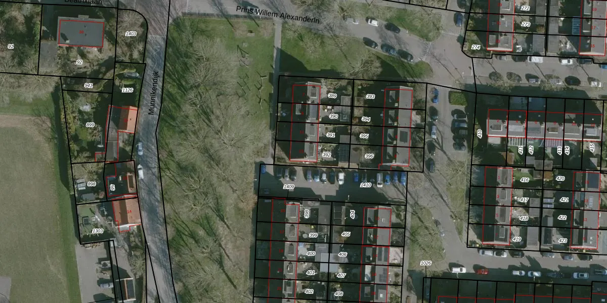 Gebruik de zoekbalk of klik op een perceel voor informatie over de adressen binnen dit perceel.