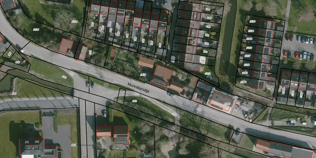 Munnikendijk 57 is gelegen op kadastraal perceel WMS01C1479. Deze kadastrale aanduiding is uniek en wordt gebruikt door het Kadaster om eigendomsrechten en andere zakelijke rechten vast te leggen. Het perceel maakt onderdeel uit van de kadastrale gemeente Westmaas.