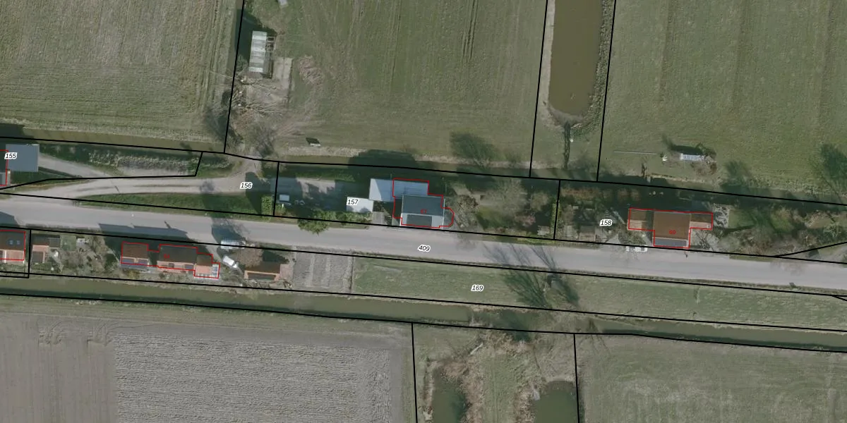 Het adres ligt op het perceel WMS01-E-157, dat zich in de kadastrale gemeente Westmaas bevindt. De gemiddelde perceelgrootte in Westmaas is 4785,88 m². Dit perceel is kleiner: de perceeloppervlakte bedraagt 915 m². Het kleinste perceel in de kadastrale gemeente is 1 m² groot. De grootste perceeloppervlakte is 27,1 ha. Dit is het enige adres dat aanwezig is op het perceel. De huidige grenzen van het perceel zijn digitaal in de Basisregistratie Kadaster (BRK) geregistreerd op 19-06-2007.