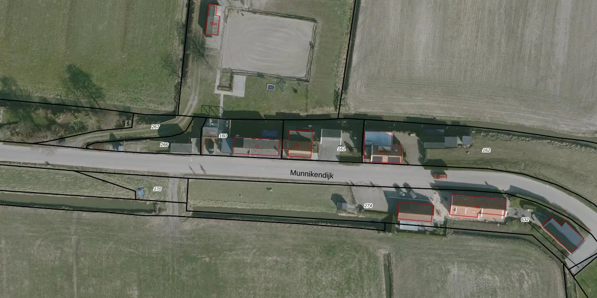 Het perceel waarop Munnikendijk 75 staat heeft een oppervlakte van 375 m². Dit is een groot perceel. De perceeloppervlakte wordt geregistreerd door het Kadaster. Gedetailleerde informatie over de maten van dit perceel kunt u vinden in het rapport Kadastrale kaart met maatvoering van Munnikendijk 75.