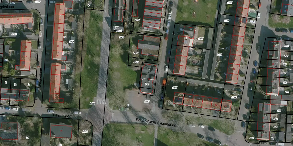 Gebruik de zoekbalk of klik op een perceel voor informatie over de adressen binnen dit perceel.