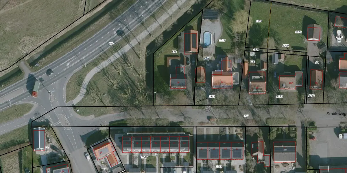 Het perceel waarop Smidsweg 16 staat heeft een oppervlakte van 1080 m². Dit is een zeer groot perceel. De perceeloppervlakte wordt geregistreerd door het Kadaster. Gedetailleerde informatie over de maten van dit perceel kunt u vinden in het rapport Kadastrale kaart met maatvoering van Smidsweg 16.