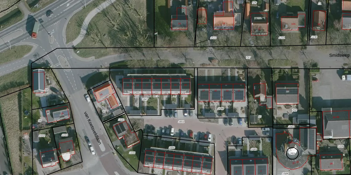 Het perceel waarop Smidsweg 21 staat heeft een oppervlakte van 1140 m². Dit is een zeer groot perceel. De perceeloppervlakte wordt geregistreerd door het Kadaster. Gedetailleerde informatie over de maten van dit perceel kunt u vinden in het rapport Kadastrale kaart met maatvoering van Smidsweg 21.