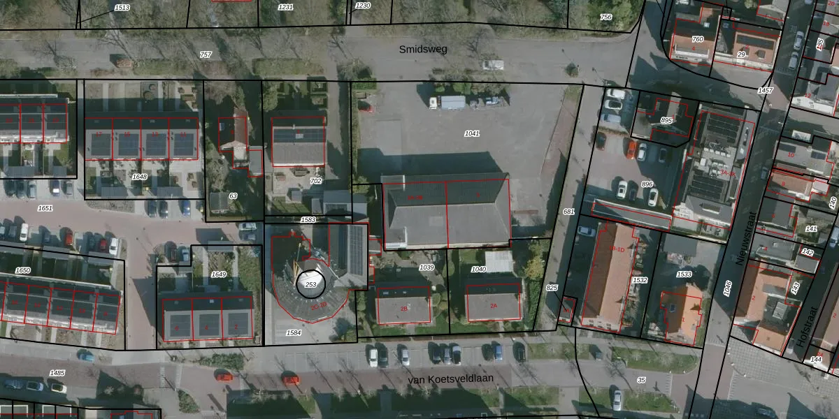 Het perceel waarop Smidsweg 3-A staat heeft een oppervlakte van 1906 m². Dit is een zeer groot perceel. De perceeloppervlakte wordt geregistreerd door het Kadaster. Gedetailleerde informatie over de maten van dit perceel kunt u vinden in het rapport Kadastrale kaart met maatvoering van Smidsweg 3-A.