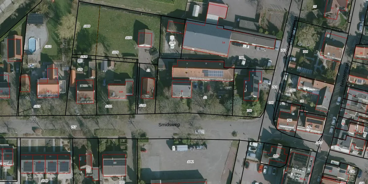 Het perceel waarop Smidsweg 8 staat heeft een oppervlakte van 1217 m². Dit is een zeer groot perceel. De perceeloppervlakte wordt geregistreerd door het Kadaster. Gedetailleerde informatie over de maten van dit perceel kunt u vinden in het rapport Kadastrale kaart met maatvoering van Smidsweg 8.