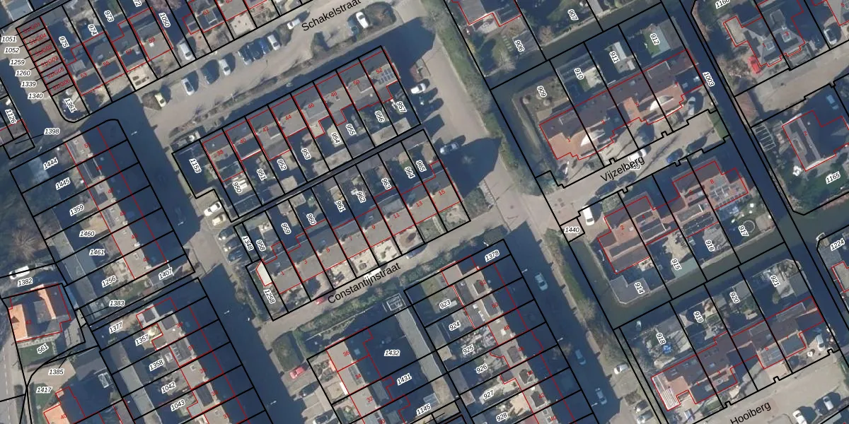 Gebruik de zoekbalk of klik op een perceel voor informatie over de adressen binnen dit perceel.
