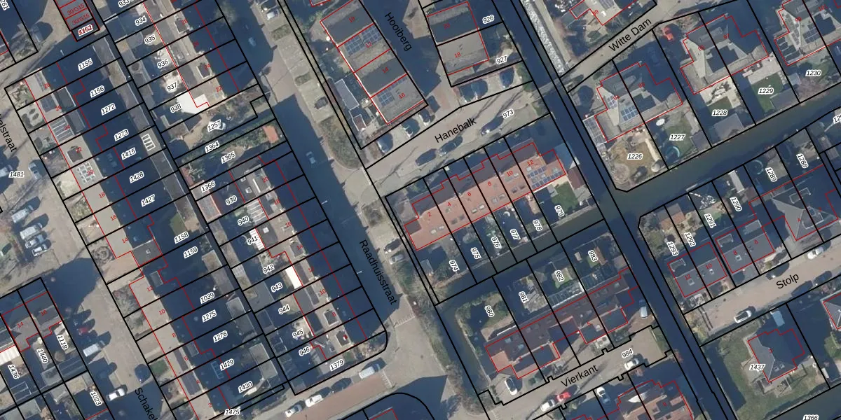 Gebruik de zoekbalk of klik op een perceel voor informatie over de adressen binnen dit perceel.