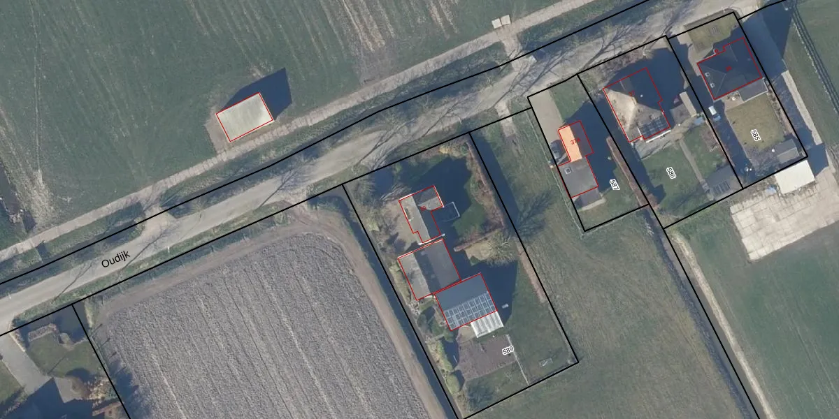 Het perceel waarop Oudijk 39 staat heeft een oppervlakte van 2020 m². Dit is een zeer groot perceel. De perceeloppervlakte wordt geregistreerd door het Kadaster. Gedetailleerde informatie over de maten van dit perceel kunt u vinden in het rapport Kadastrale kaart met maatvoering van Oudijk 39.