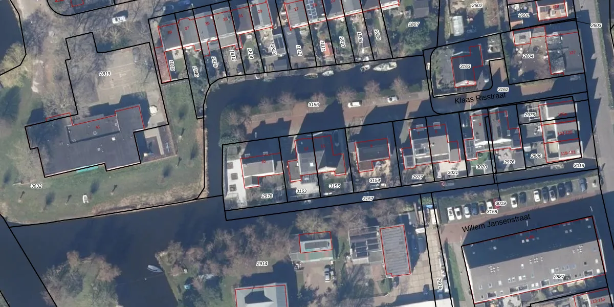 Gebruik de zoekbalk of klik op een perceel voor informatie over de adressen binnen dit perceel.
