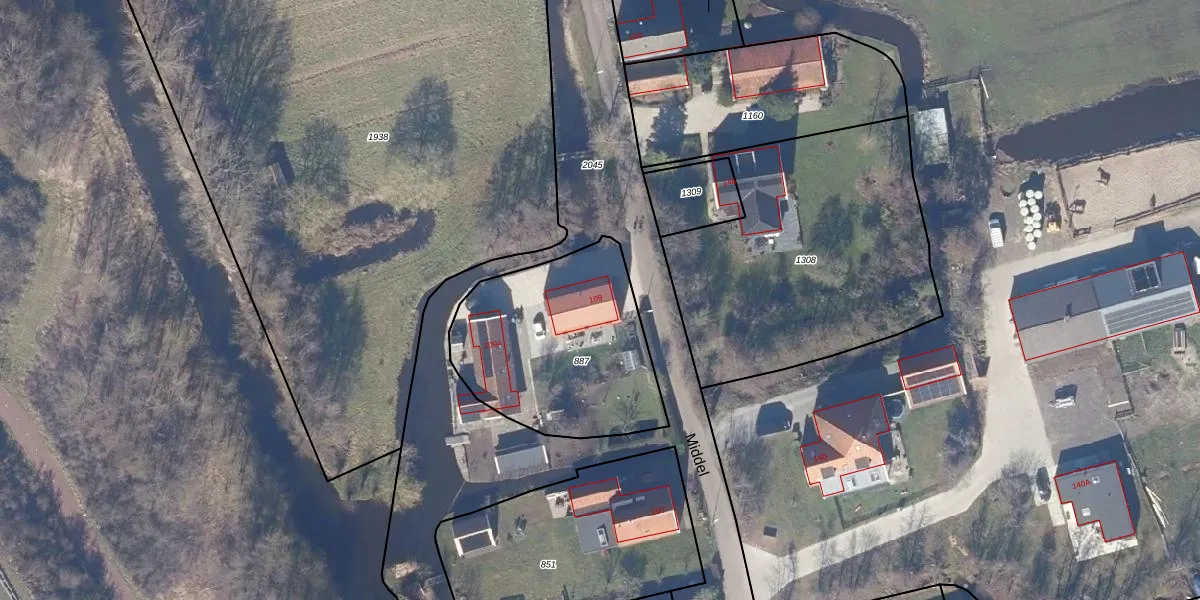 Het perceel waarop Middel 109 staat heeft een oppervlakte van 700 m². Dit is een groot perceel. De perceeloppervlakte wordt geregistreerd door het Kadaster. Gedetailleerde informatie over de maten van dit perceel kunt u vinden in het rapport Kadastrale kaart met maatvoering van Middel 109.