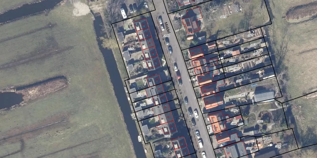 Het perceel waarop Middel 29 staat heeft een oppervlakte van 1185 m². Dit is een zeer groot perceel. De perceeloppervlakte wordt geregistreerd door het Kadaster. Gedetailleerde informatie over de maten van dit perceel kunt u vinden in het rapport Kadastrale kaart met maatvoering van Middel 29.