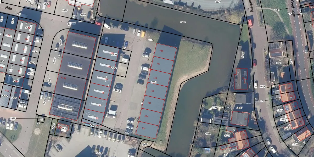 Het perceel waarop Rak 115 staat heeft een oppervlakte van 3947 m². Dit is een zeer groot perceel. De perceeloppervlakte wordt geregistreerd door het Kadaster. Gedetailleerde informatie over de maten van dit perceel kunt u vinden in het rapport Kadastrale kaart met maatvoering van Rak 115.