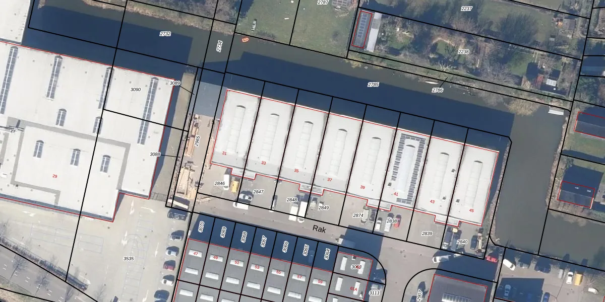 Het perceel waarop Rak 35 staat heeft een oppervlakte van 477 m². Dit is een groot perceel. De perceeloppervlakte wordt geregistreerd door het Kadaster. Gedetailleerde informatie over de maten van dit perceel kunt u vinden in het rapport Kadastrale kaart met maatvoering van Rak 35.