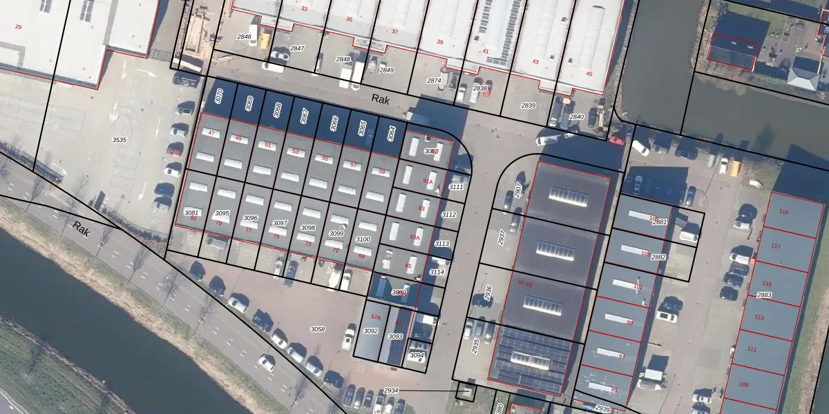Het perceel waarop Rak 63 staat heeft een oppervlakte van 125 m². Dit is een middelgroot perceel. De perceeloppervlakte wordt geregistreerd door het Kadaster. Gedetailleerde informatie over de maten van dit perceel kunt u vinden in het rapport Kadastrale kaart met maatvoering van Rak 63.