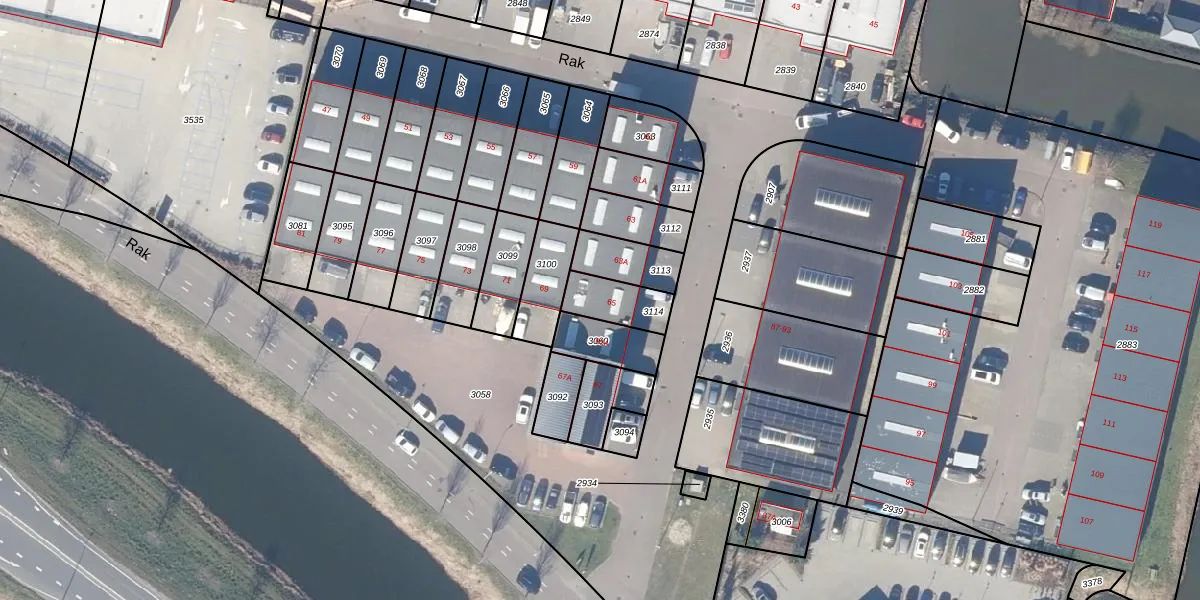 Het perceel waarop Rak 65 staat heeft een oppervlakte van 125 m². Dit is een middelgroot perceel. De perceeloppervlakte wordt geregistreerd door het Kadaster. Gedetailleerde informatie over de maten van dit perceel kunt u vinden in het rapport Kadastrale kaart met maatvoering van Rak 65.