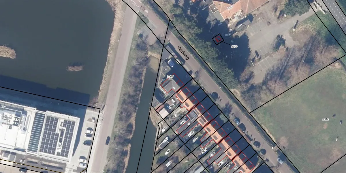 Gebruik de zoekbalk of klik op een perceel voor informatie over de adressen binnen dit perceel.
