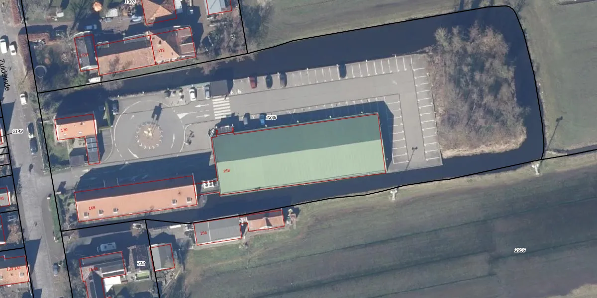 Zuideinde 168 is gelegen op kadastraal perceel WZN00D2339. Deze kadastrale aanduiding is uniek en wordt gebruikt door het Kadaster om eigendomsrechten en andere zakelijke rechten vast te leggen. Het perceel maakt onderdeel uit van de kadastrale gemeente Westzaan.