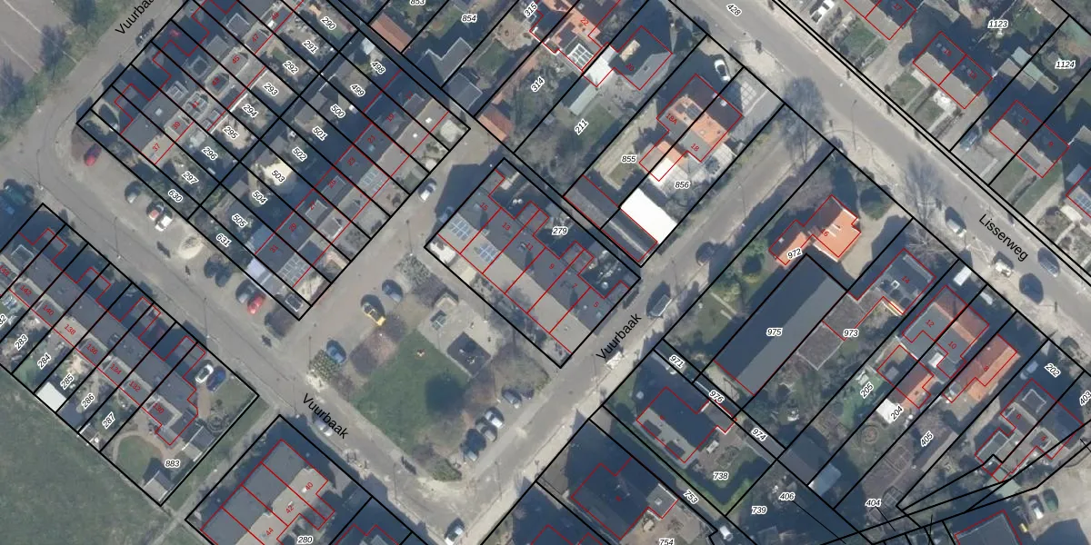 Het perceel waarop Vuurbaak 9 staat heeft een oppervlakte van 732 m². Dit is een groot perceel. De perceeloppervlakte wordt geregistreerd door het Kadaster. Gedetailleerde informatie over de maten van dit perceel kunt u vinden in het rapport Kadastrale kaart met maatvoering van Vuurbaak 9.