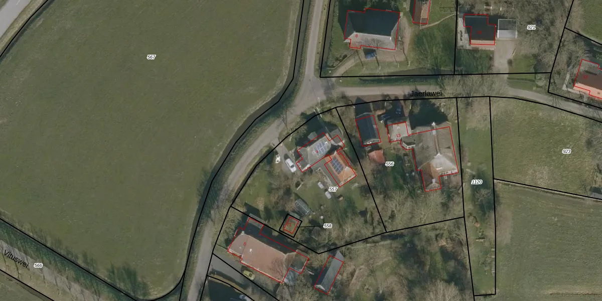 Jaerlawei 9 is gelegen op kadastraal perceel NKK02E557. Deze kadastrale aanduiding is uniek en wordt gebruikt door het Kadaster om eigendomsrechten en andere zakelijke rechten vast te leggen. Het perceel maakt onderdeel uit van de kadastrale gemeente Nijkerk Friesland.