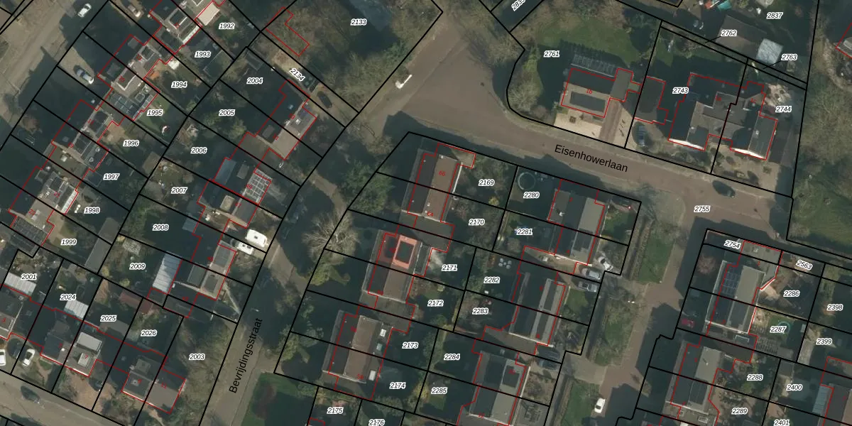 Gebruik de zoekbalk of klik op een perceel voor informatie over de adressen binnen dit perceel.