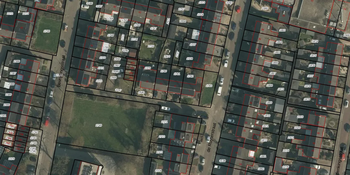 Het perceel waarop de Ruyterstraat 9 staat heeft een oppervlakte van 162 m². Dit is een middelgroot perceel. De perceeloppervlakte wordt geregistreerd door het Kadaster. Gedetailleerde informatie over de maten van dit perceel kunt u vinden in het rapport Kadastrale kaart met maatvoering van de Ruyterstraat 9.