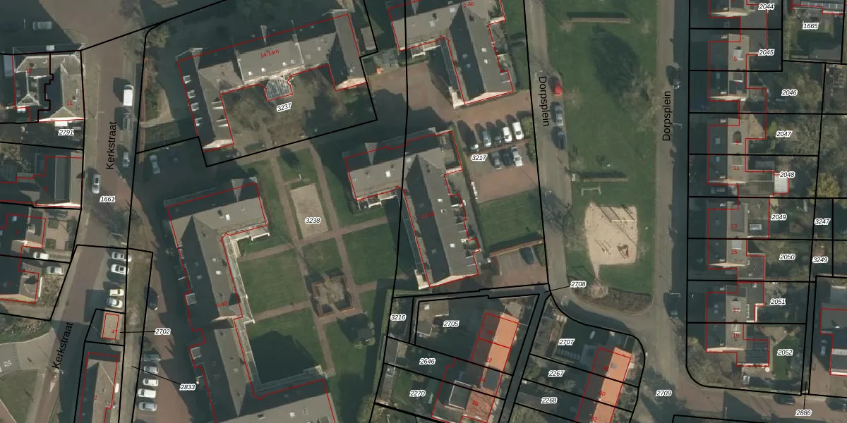 Het perceel waarop Dorpsplein 10-a staat heeft een oppervlakte van 2376 m². Dit is een zeer groot perceel. De perceeloppervlakte wordt geregistreerd door het Kadaster. Gedetailleerde informatie over de maten van dit perceel kunt u vinden in het rapport Kadastrale kaart met maatvoering van Dorpsplein 10-a.
