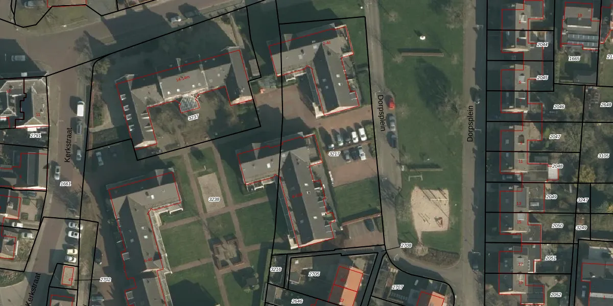 Het perceel waarop Dorpsplein 16-a staat heeft een oppervlakte van 2376 m². Dit is een zeer groot perceel. De perceeloppervlakte wordt geregistreerd door het Kadaster. Gedetailleerde informatie over de maten van dit perceel kunt u vinden in het rapport Kadastrale kaart met maatvoering van Dorpsplein 16-a.