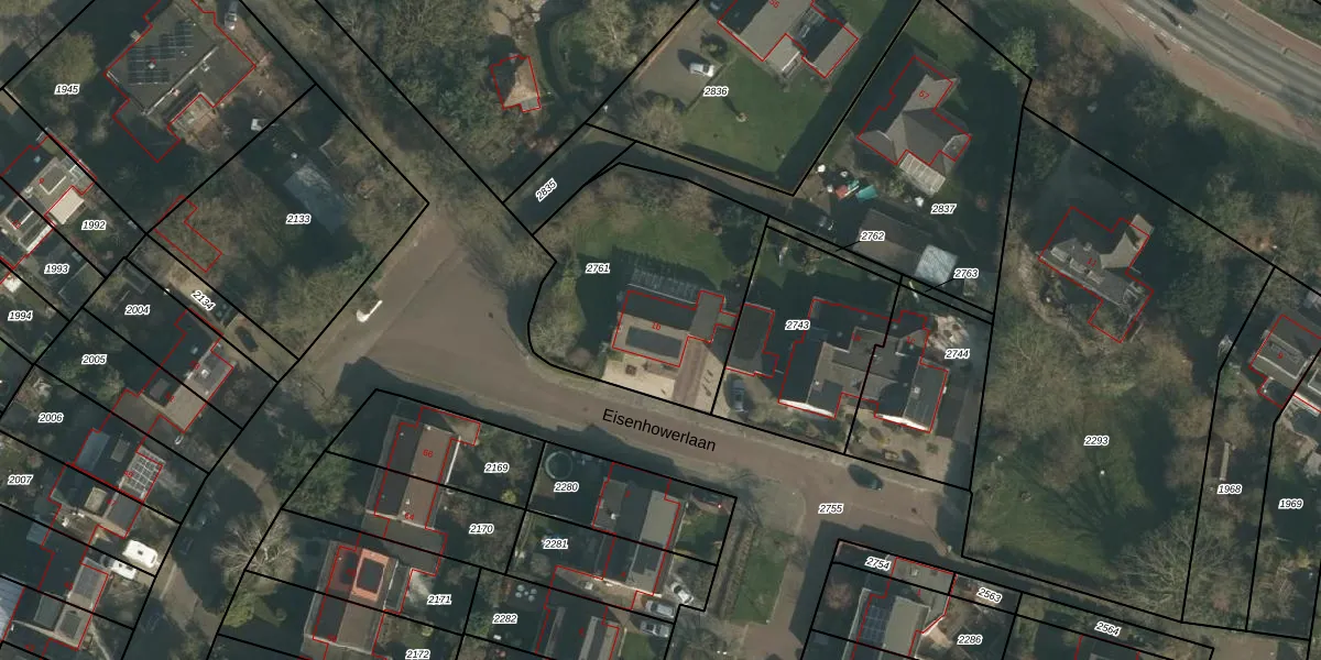 Het perceel waarop Eisenhowerlaan 1-b staat heeft een oppervlakte van 940 m². Dit is een groot perceel. De perceeloppervlakte wordt geregistreerd door het Kadaster. Gedetailleerde informatie over de maten van dit perceel kunt u vinden in het rapport Kadastrale kaart met maatvoering van Eisenhowerlaan 1-b.