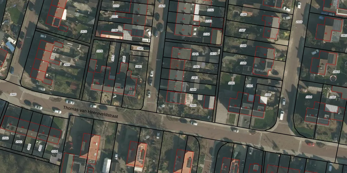 Gebruik de zoekbalk of klik op een perceel voor informatie over de adressen binnen dit perceel.