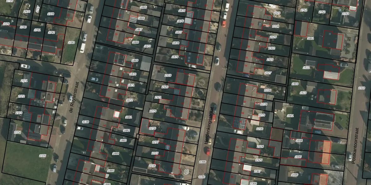 Het perceel waarop Herdenkingsstraat 45 staat heeft een oppervlakte van 187 m². Dit is een middelgroot perceel. De perceeloppervlakte wordt geregistreerd door het Kadaster. Gedetailleerde informatie over de maten van dit perceel kunt u vinden in het rapport Kadastrale kaart met maatvoering van Herdenkingsstraat 45.