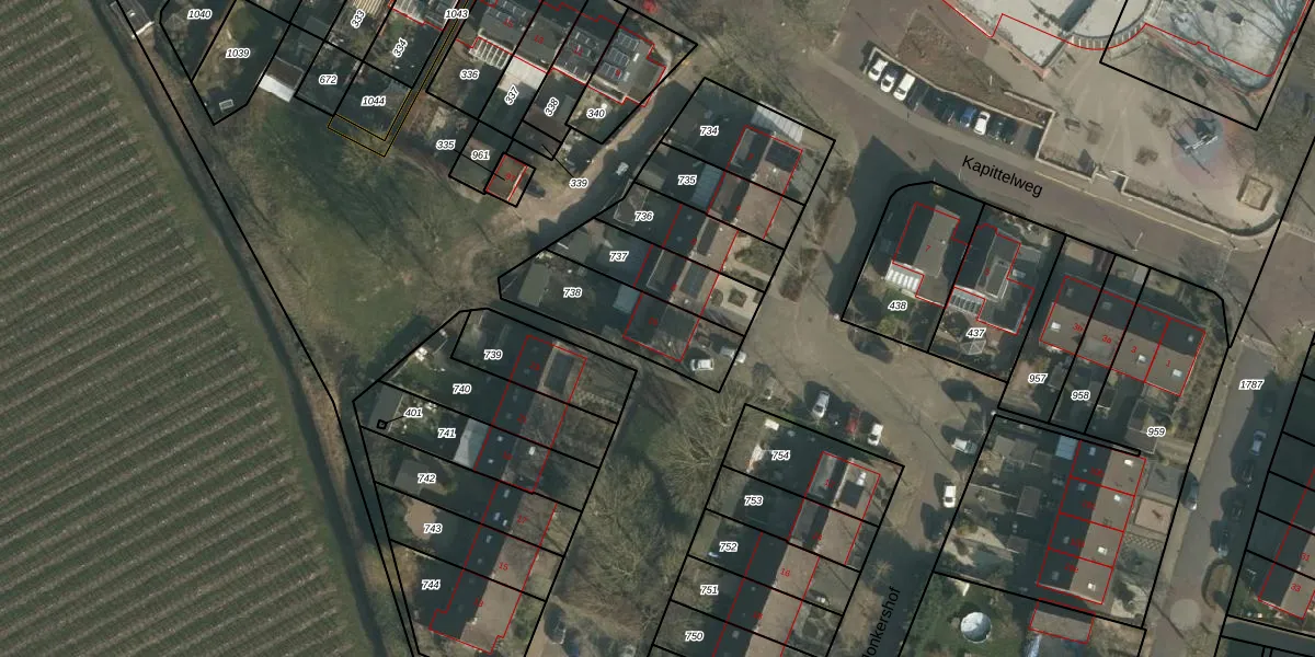 Het perceel waarop Jonkershof 10 staat heeft een oppervlakte van 335 m². Dit is een groot perceel. De perceeloppervlakte wordt geregistreerd door het Kadaster. Gedetailleerde informatie over de maten van dit perceel kunt u vinden in het rapport Kadastrale kaart met maatvoering van Jonkershof 10.