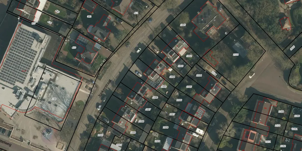 Het perceel waarop Jonkerstraat 15 staat heeft een oppervlakte van 300 m². Dit is een groot perceel. De perceeloppervlakte wordt geregistreerd door het Kadaster. Gedetailleerde informatie over de maten van dit perceel kunt u vinden in het rapport Kadastrale kaart met maatvoering van Jonkerstraat 15.