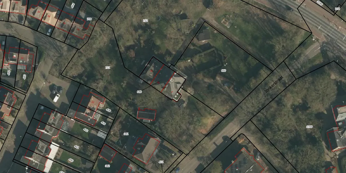 Het perceel waarop Jonkerstraat 2 staat heeft een oppervlakte van 349 m². Dit is een groot perceel. De perceeloppervlakte wordt geregistreerd door het Kadaster. Gedetailleerde informatie over de maten van dit perceel kunt u vinden in het rapport Kadastrale kaart met maatvoering van Jonkerstraat 2.
