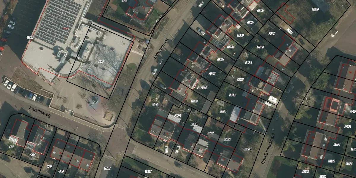Het perceel waarop Jonkerstraat 23 staat heeft een oppervlakte van 310 m². Dit is een groot perceel. De perceeloppervlakte wordt geregistreerd door het Kadaster. Gedetailleerde informatie over de maten van dit perceel kunt u vinden in het rapport Kadastrale kaart met maatvoering van Jonkerstraat 23.