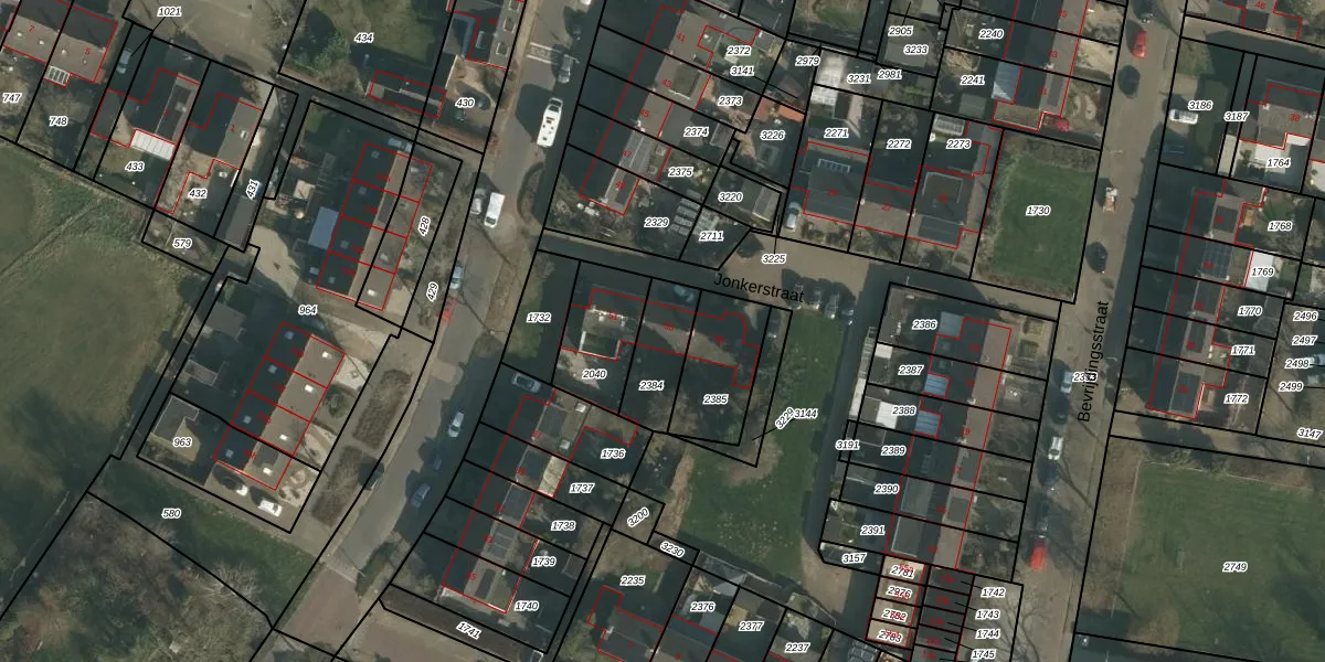 Het perceel waarop Jonkerstraat 53 staat heeft een oppervlakte van 173 m². Dit is een middelgroot perceel. De perceeloppervlakte wordt geregistreerd door het Kadaster. Gedetailleerde informatie over de maten van dit perceel kunt u vinden in het rapport Kadastrale kaart met maatvoering van Jonkerstraat 53.
