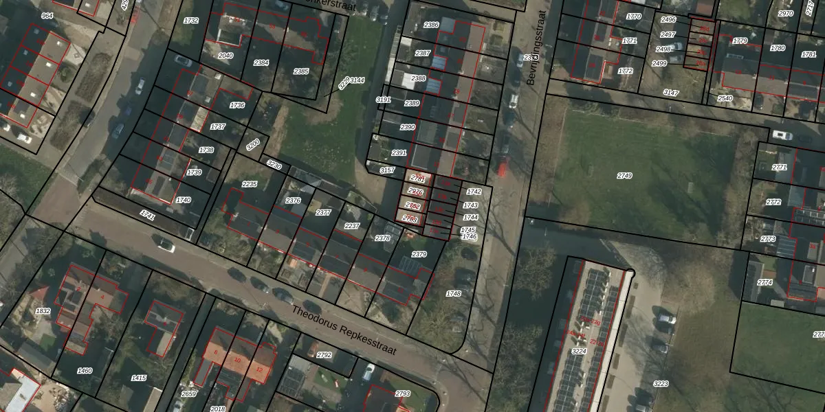 Gebruik de zoekbalk of klik op een perceel voor informatie over de adressen binnen dit perceel.