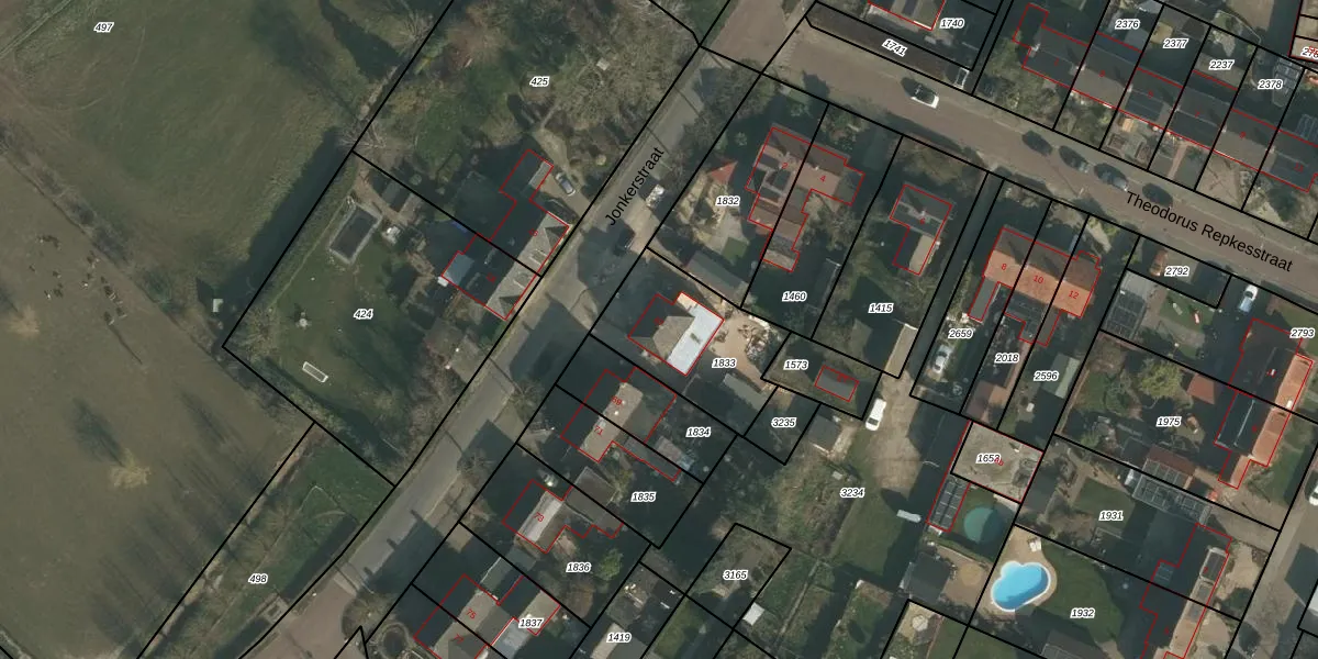 Het perceel waarop Jonkerstraat 67 staat heeft een oppervlakte van 442 m². Dit is een groot perceel. De perceeloppervlakte wordt geregistreerd door het Kadaster. Gedetailleerde informatie over de maten van dit perceel kunt u vinden in het rapport Kadastrale kaart met maatvoering van Jonkerstraat 67.