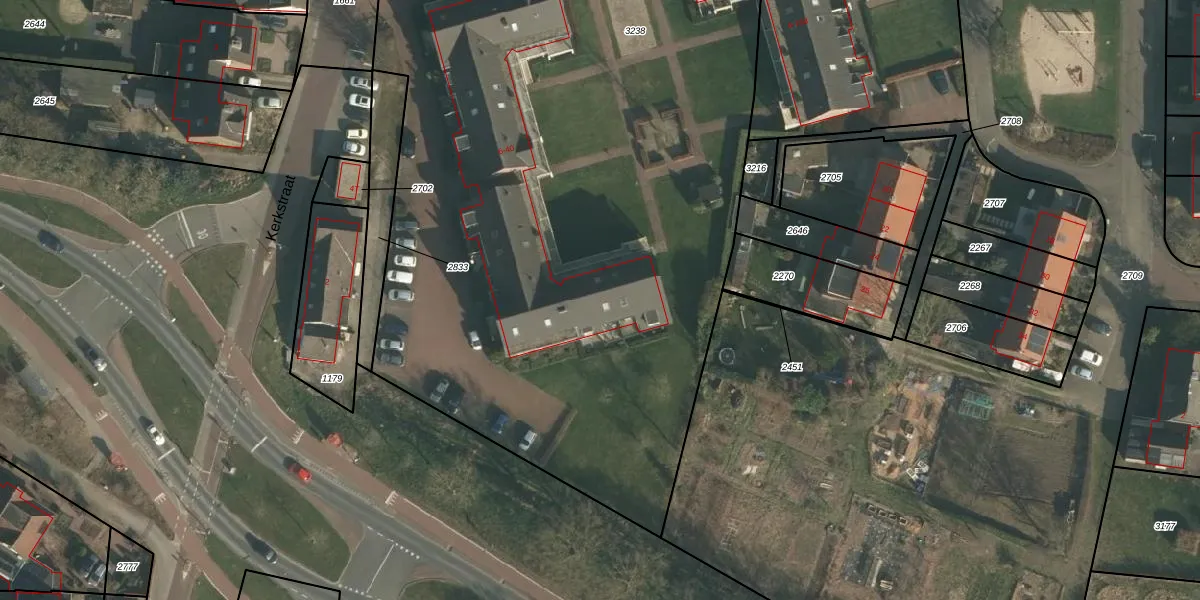 Het perceel waarop Kerkstraat 26 staat heeft een oppervlakte van 5626 m². Dit is een zeer groot perceel. De perceeloppervlakte wordt geregistreerd door het Kadaster. Gedetailleerde informatie over de maten van dit perceel kunt u vinden in het rapport Kadastrale kaart met maatvoering van Kerkstraat 26.