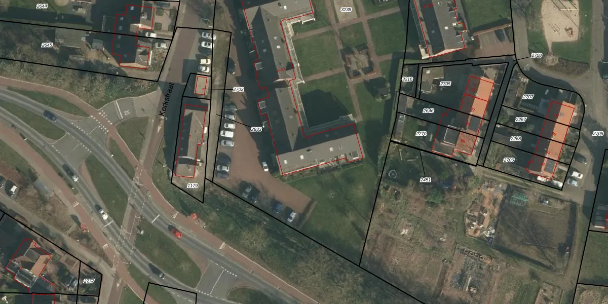 Het perceel waarop Kerkstraat 28 staat heeft een oppervlakte van 5626 m². Dit is een zeer groot perceel. De perceeloppervlakte wordt geregistreerd door het Kadaster. Gedetailleerde informatie over de maten van dit perceel kunt u vinden in het rapport Kadastrale kaart met maatvoering van Kerkstraat 28.