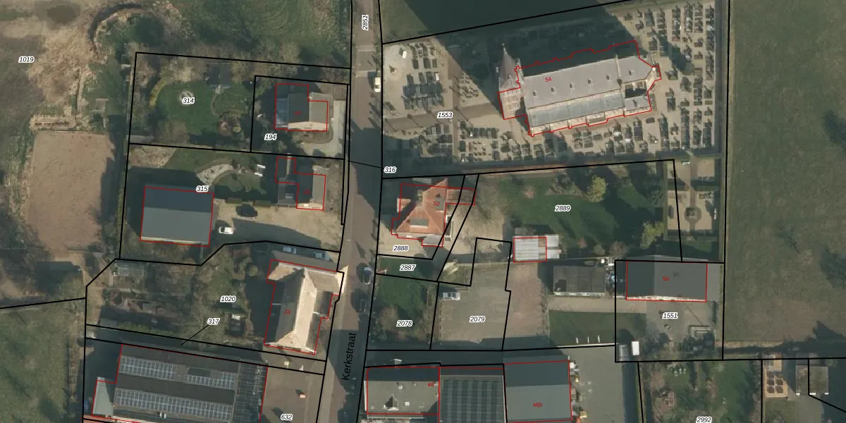Het perceel waarop Kerkstraat 52 staat heeft een oppervlakte van 315 m². Dit is een groot perceel. De perceeloppervlakte wordt geregistreerd door het Kadaster. Gedetailleerde informatie over de maten van dit perceel kunt u vinden in het rapport Kadastrale kaart met maatvoering van Kerkstraat 52.