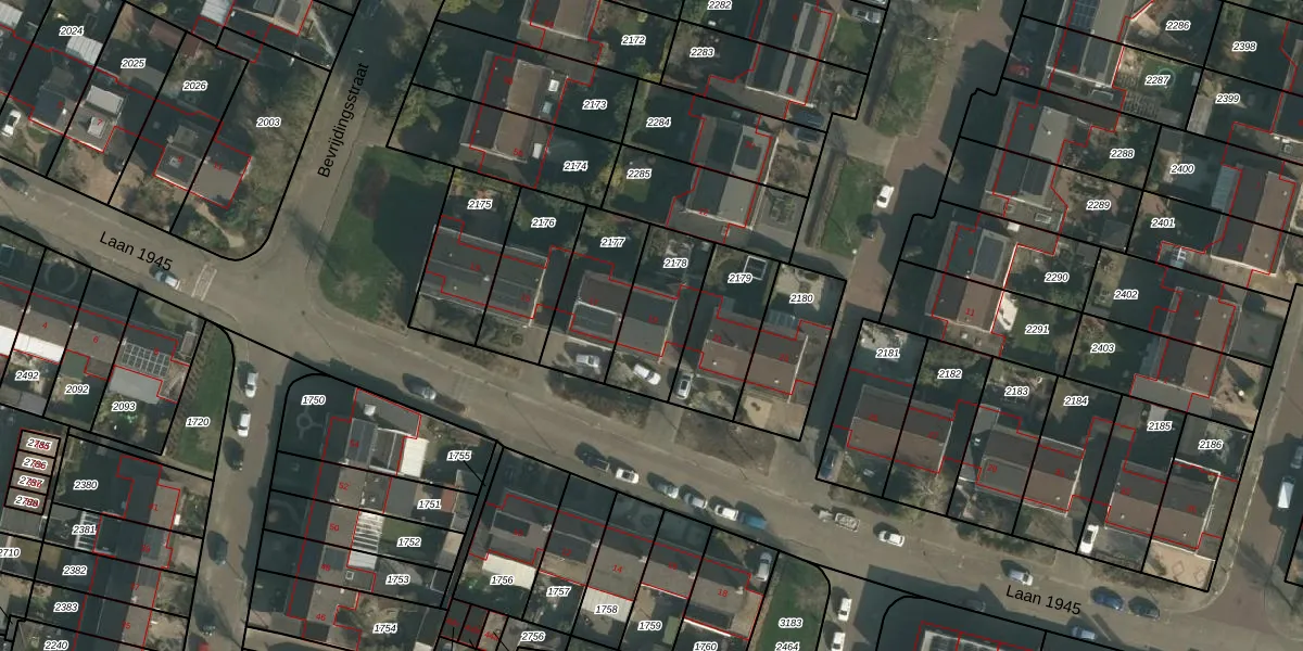 Laan 1945 19 is gelegen op kadastraal perceel WEU00B2178. Deze kadastrale aanduiding is uniek en wordt gebruikt door het Kadaster om eigendomsrechten en andere zakelijke rechten vast te leggen. Het perceel maakt onderdeel uit van de kadastrale gemeente Weurt.