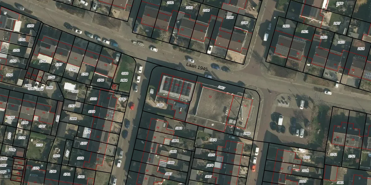 Laan 1945 20-a is gelegen op kadastraal perceel WEU00B1946. Deze kadastrale aanduiding is uniek en wordt gebruikt door het Kadaster om eigendomsrechten en andere zakelijke rechten vast te leggen. Het perceel maakt onderdeel uit van de kadastrale gemeente Weurt.