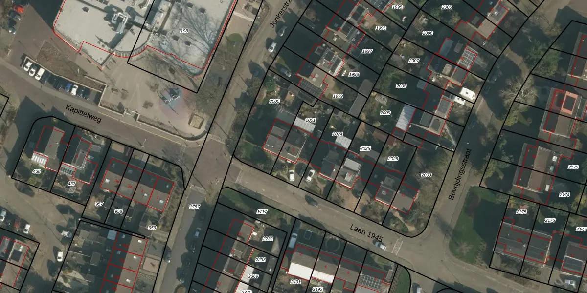 Laan 1945 3 is gelegen op kadastraal perceel WEU00B2001. Deze kadastrale aanduiding is uniek en wordt gebruikt door het Kadaster om eigendomsrechten en andere zakelijke rechten vast te leggen. Het perceel maakt onderdeel uit van de kadastrale gemeente Weurt.