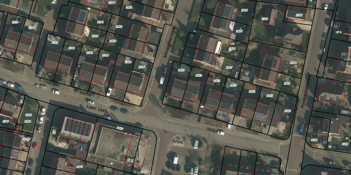 Laan 1945 37 is gelegen op kadastraal perceel WEU00B2410. Deze kadastrale aanduiding is uniek en wordt gebruikt door het Kadaster om eigendomsrechten en andere zakelijke rechten vast te leggen. Het perceel maakt onderdeel uit van de kadastrale gemeente Weurt.