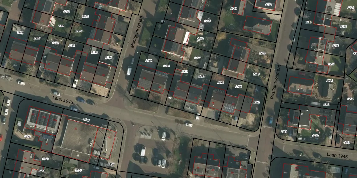 Laan 1945 41 is gelegen op kadastraal perceel WEU00B2412. Deze kadastrale aanduiding is uniek en wordt gebruikt door het Kadaster om eigendomsrechten en andere zakelijke rechten vast te leggen. Het perceel maakt onderdeel uit van de kadastrale gemeente Weurt.