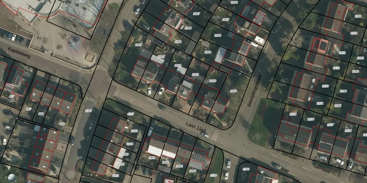 Laan 1945 7 is gelegen op kadastraal perceel WEU00B2025. Deze kadastrale aanduiding is uniek en wordt gebruikt door het Kadaster om eigendomsrechten en andere zakelijke rechten vast te leggen. Het perceel maakt onderdeel uit van de kadastrale gemeente Weurt.